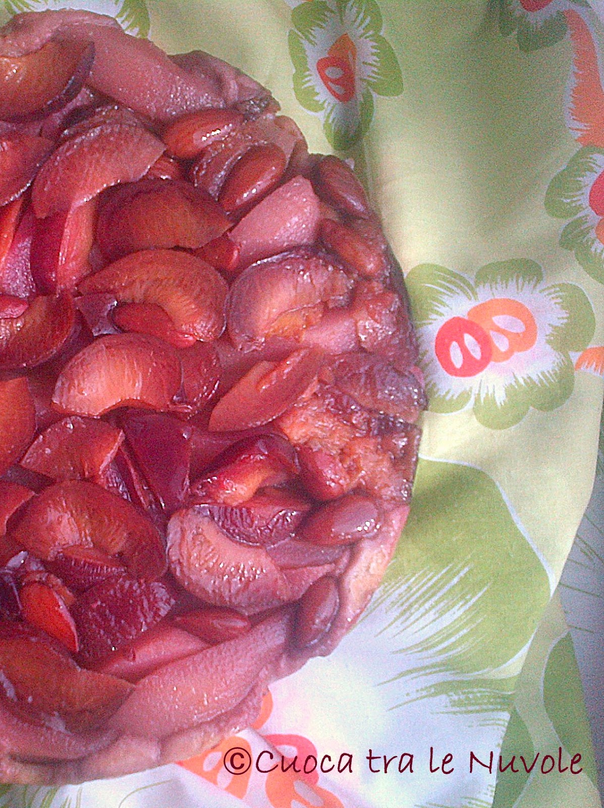 E ora veniamo alla mia proposta. Questo è il mio primo esperimento di torta che rispetti i dettami della mia attuale dieta. Una tarte tatine a modo mio, di pere e susine con pasta briseè al farro e olio e senza zucchero. L'ho preparata sabato scorso e l'ho portata a casa di amici. Mi hanno fatto tutti i complimenti, peccato che sperassero di veder arrivare una mud cake con mousse al gianduia, ma d'altra parte i veri amici si vedono nei momenti di difficoltà! :-) Devo dire, ad onor del vero, che la torta era in effetti buona, dal sapore delicato e senz'altro molto salutare.